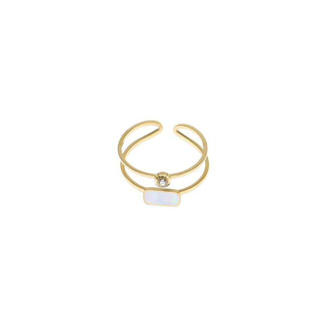 Bague Zag en acier doré, nacre et oxyde de zirconium, taille ajustable