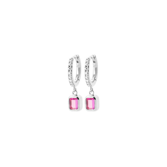 Boucles d'oreilles créoles en argent rhodié, oxydes de zirconium et pierres synthétiques
