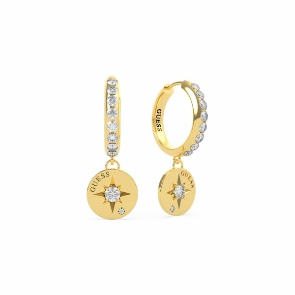 Boucles d'oreilles Guess Wanderlust en acier doré, cristaux Swarovski, forme boussole
