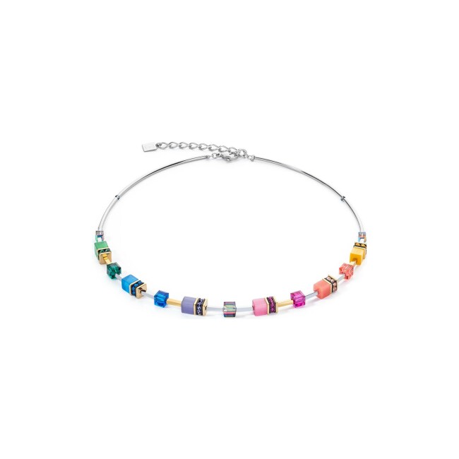 GeoCUBE Collier Coeur de Lion GeoCUBE Iconic Lite en acier doré, acier, cristaux Swarovski, strass et oeil de tigre et verre