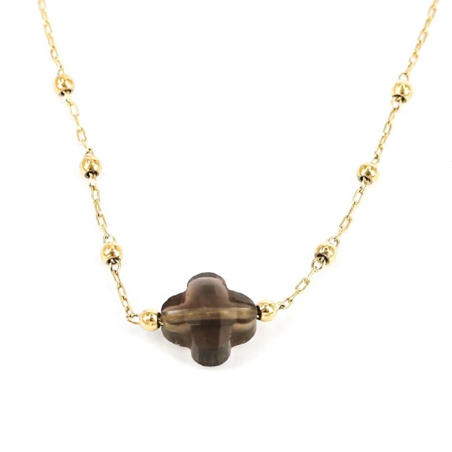 Collier ZAG en acier doré et quartz fumé
