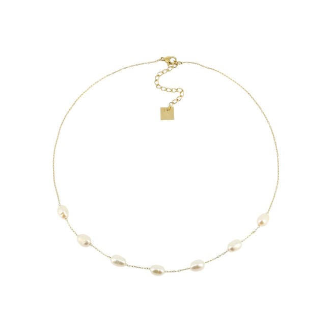 Collier Zag Amélia en acier doré, nacre et perle d'eau douce