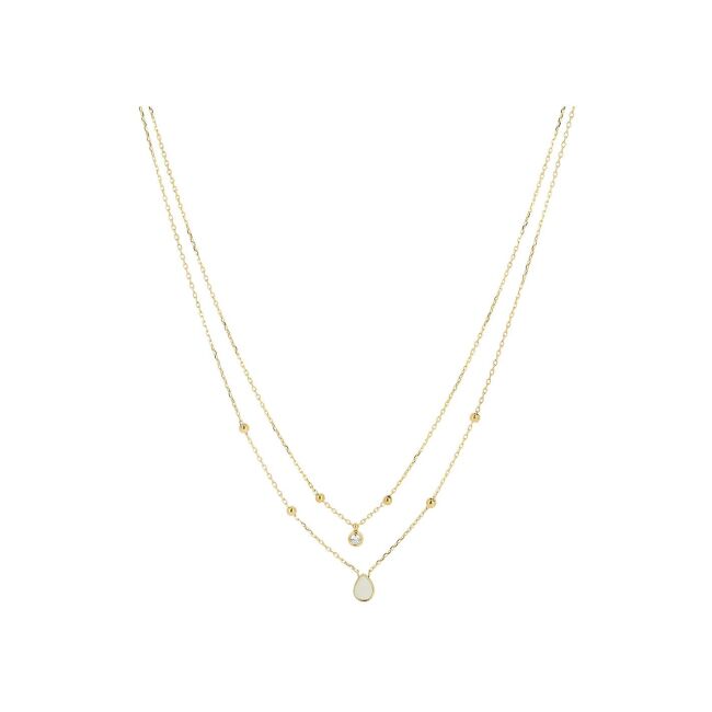 Collier Zag Gemme en acier doré, oxyde de zirconium et nacre