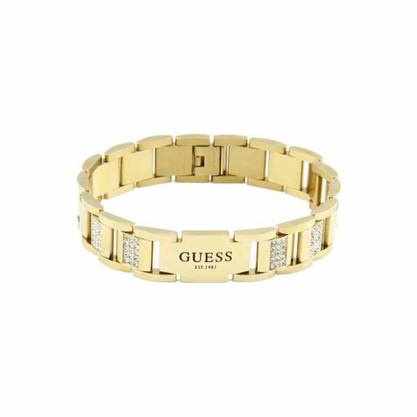 Bracelet Guess Miniature en acier doré et cristaux Swarovski, avec deux rangées, logo 4G et cristaux