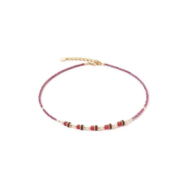 Collier Coeur de Lion Wave Cube Flow en acier doré, oeil de tigre, hématite et cristaux Swarovski et verre