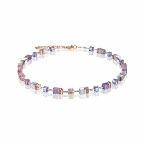 Collier Coeur de Lion en améthyste clair, cristaux, hématite avec une finition d'oxyde de titane, rondelles de strass et métal doré rose
