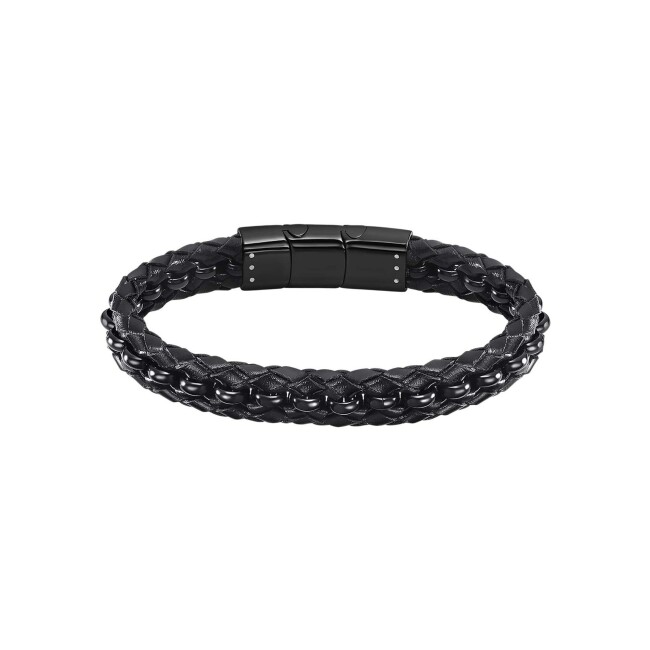 Men Basic Bracelet Lotus Men Basic en acier et cuir tressé noir