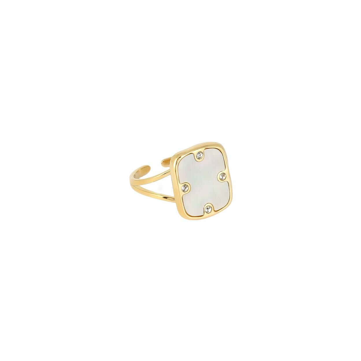 Bague Zag en acier doré, nacre et oxyde de zirconium, taille ajustable