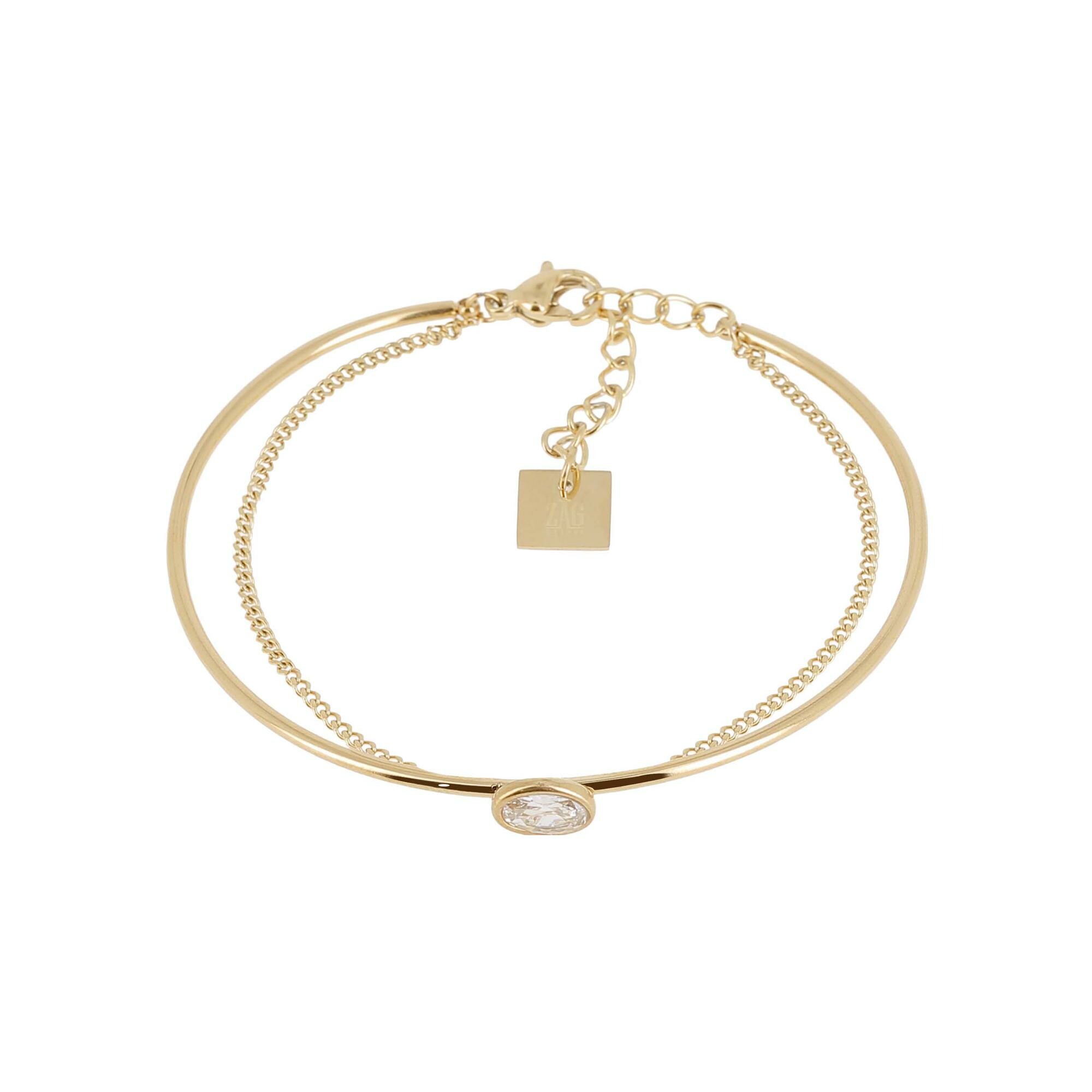 Bracelet jonc Zag Ricci en acier doré et oxyde de zirconium, Blanc