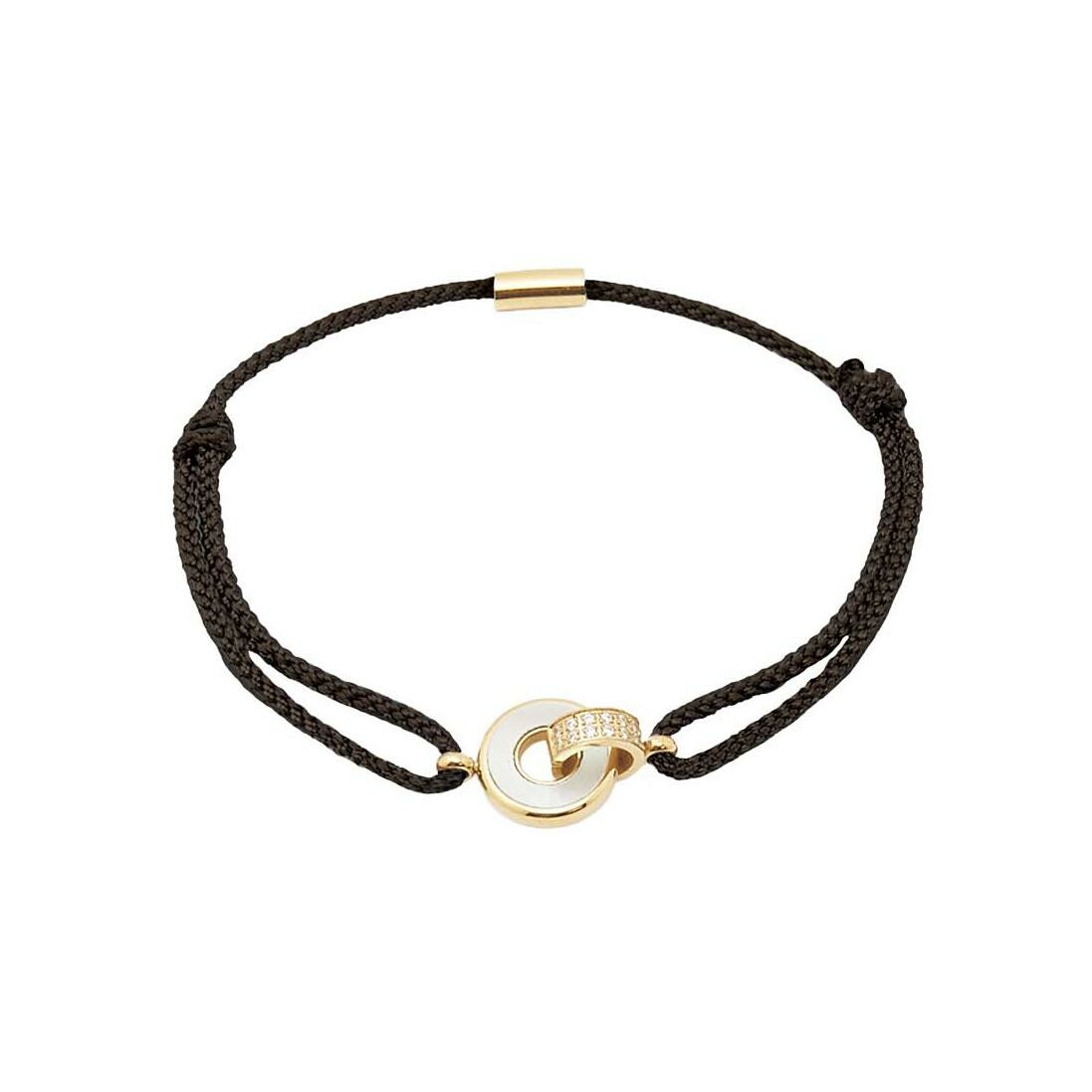 Bracelet Zag Katia en acier doré, textile, oxyde de zirconium et nacre, Noir
