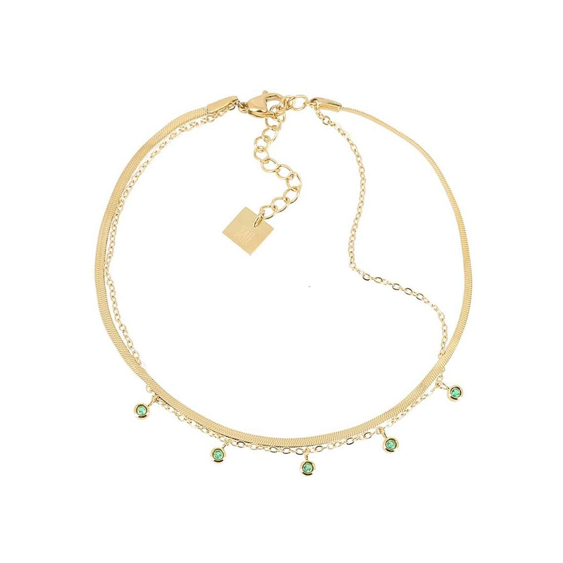 Chaîne de cheville Zag Prestige en acier doré et oxyde de zirconium, Vert