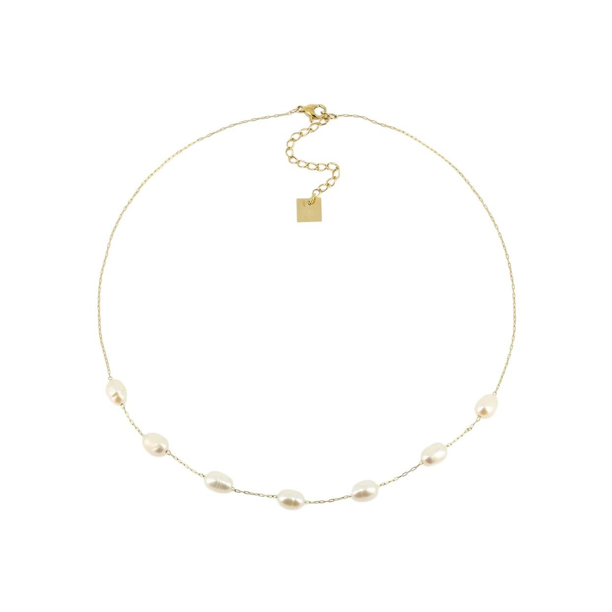 Collier Zag Amélia en acier doré, nacre et perle d'eau douce