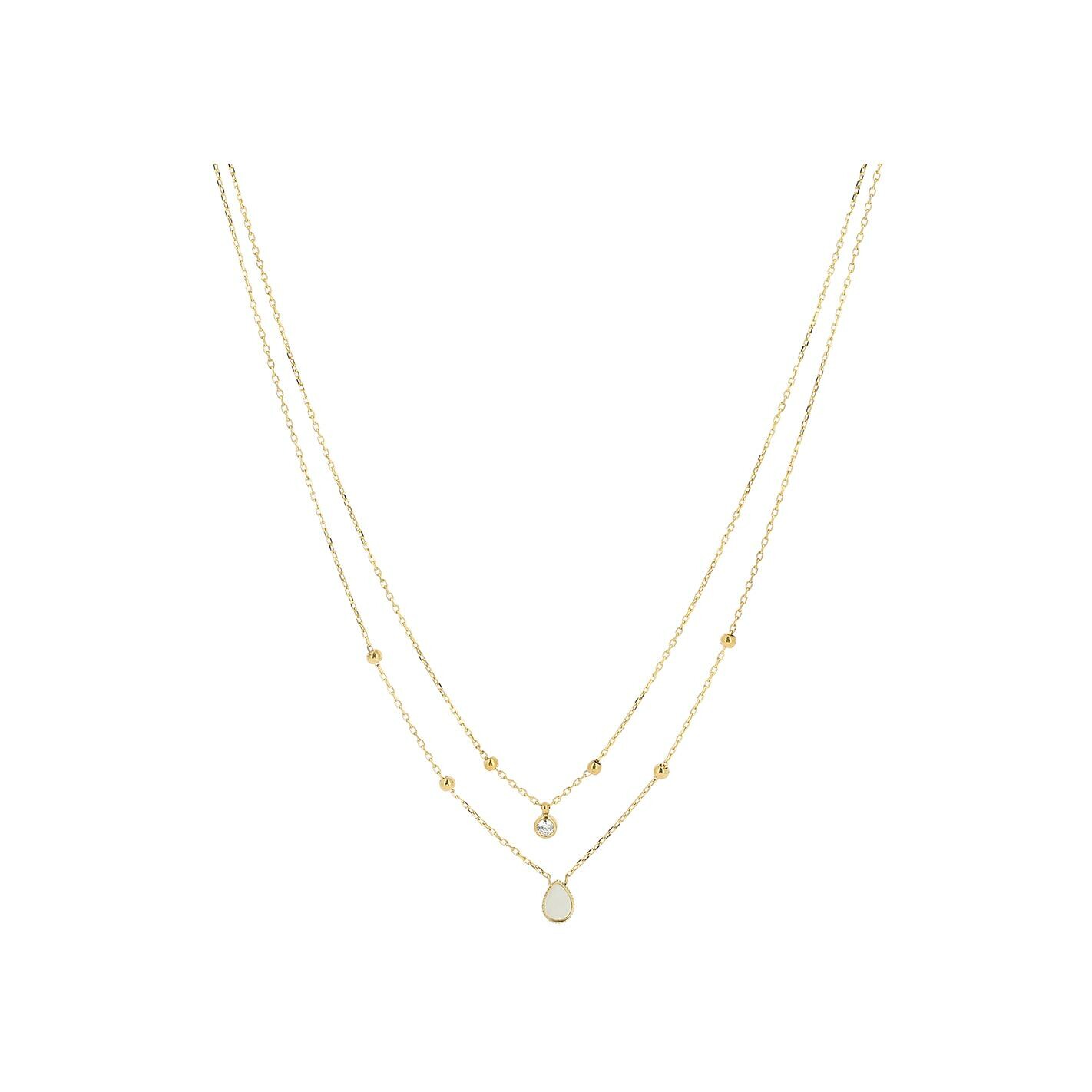 Collier Zag Softy en acier doré, nacre et oxyde de zirconium